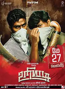 Uriyadi (Tamil: உறியடி) (transl. Breaking point) is a 2016 Indian Tamil-language political action thriller film[1][2] written, directed and produced by newcomer Vijay Kumar under the production banner Souvenir Productions with Nalan Kumarasamy, Sameer Bharat Ram and Satish Swaminathan presented and co-produced the film. The film stars Vijay Kumar, Mime Gopi, Citizen Sivakumar, Chandru Kumar, Henna Bella, Jeyakanth Velu and Suruli. Set in the 1990s, It revolves around the lives of four bachelors, whose carefree life take a turn when they are embroiled into a political fight, but they end up finding their mutual interconnections.