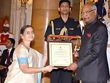 She was awarded the Nari Shakti Puraskar on International Women's Day in 2018.[5] The award was made by President Kovind at the Presidential Palace (Rastrapati Bhavan) in New Delhi with the Prime Minister of India, Narendra Modi also attending. Thirty-nine people or organisations were honoured that year. They received the award and a prize of $R 100,000.[6]