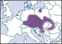This species occurs primarily in mountain forests in Austria, Germany, Italy, Switzerland and Slovenia.