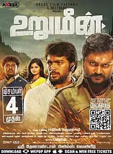 Urumeen is a 2015 Indian Tamil-language fantasy action thriller film written and directed by debutante director Sakthivel Perumalsamy. It stars Bobby Simha, Reshmi Menon, and Kalaiyarasan. Produced by Axess Film Factory, the film has cinematography by Ravindranath Guru and music composed by Achu Rajamani. Urumeen is a revenge saga spanning across three generations.[2] The film also uses Motion capture technology in a five-minute opening sequence.[3]