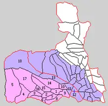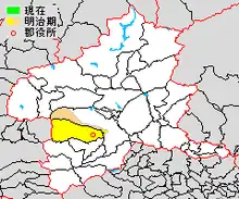 purple=Takasaki city, red=Annaka city, red line=border of Usui District