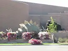 Outside the museum is the Dinosaur Garden, which features 17 full-sized prehistoric animal replicas from the Pennsylvanian through the Pleistocene epochs on the Geological time scale. Highlights include a twenty-foot Tyrannosaurus, a Stegosaurus, and two Moschops. The majority of these items were created by sculptor Elbert Porter, and were purchased in 1977 for the Field House. The newest addition, obtained by the museum in 1993, is a model of a Coelophysis made by artist David Thomas.[1]
