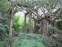 One of the main coal mining companies within Iriomote Island, Marumitsu Mining Company, found thick layers of coal along Utara River in 1935. Earlier, the predecessor of Marumitsu Mining Company, Takasaki Mining Company was established in 1924 by Kōichirō Noda, a contractor with 50 workers, Kimiichi Oguri, an accountant general, and Shōsaburō Takasaki, a money lender in Naha.[1][2] The company changed their name to Marumitsu Goumei Company in 1933. First, they mined coal along Nakara River but then they investigated other areas and found good layers of coal along Utara River in 1935. In 1936, they started to mining there with a large lodging house for 400 single workers and more than 10 houses for couples. There were two thick layers of coal in the Utara Mine; one was 60 cm thick and the other 40 cm thick. Coal was sent first by Minecart and later by boat on the Utara river carrying 20 to 30 tons each. In 1938, the mine was producing 2,500 tons monthly. Facilities for workers were extraordinarily good, compared with other mines. Sanitary conditions were greatly improved; glass was used for the prevention of mosquitoes and hence malaria. There were large bathrooms, good water supplies and a doctor's office. There was a 300-seat theater for movies; and dramas were played by workers there. There were three festivals for the workers. Children were educated at a school called Midori Gakuen (Green School). However, the involvement in the Pacific War in 1941 increased the demand for coal, leading to a worsening of mining conditions; men were drafted into military service and the mining operation was discontinued in 1943. The buildings of the mine were destroyed by American air raids. The president of the company, Kōichirō Noda gave up the mine and was engaged in agriculture. The Midori School was made a forerunner to Uehara Elementary School, Taketomi, Okinawa.[3]