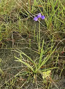 Utricularia delphinioides is a small to medium-sized, probably perennial, carnivorous plant that belongs to the genus Utricularia. It is endemic to Indochina and can be found in Cambodia, Laos, Thailand, and Vietnam. U. delphinioides grows as a terrestrial plant in swamps and rice fields, wet grasslands, or open pine forests at altitudes from near sea level to 1,300 m (4,265 ft). It was originally named by Clovis Thorel but formally described and published by François Pellegrin in 1920. A variety, U. delphinioides var. minor, was also described in 1920, but Peter Taylor reduced the variety to synonymy under U. delphinioides because he discovered a continuous range of sizes between the larger and smaller forms, size being the only distinctive characteristic in the 1920 description of the variety.[1]
