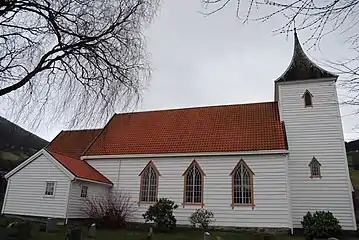 Utvik Church (Norwegian: Utvik kyrkje) is a parish church of the Church of Norway in Stryn Municipality in Vestland county, Norway. It is located in the village of Utvik. It is the church for the Utvik parish which is part of the Nordfjord prosti (deanery) in the Diocese of Bjørgvin. The white, wooden church was built in a long church design in 1840 using plans drawn up by the architect Hans Linstow. The church seats about 350 people.[1][2]