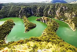 The river is famous for its gorge, Kanjon Uvca, the thriving colony of reintroduced griffon vultures and the Uvac Special Nature Reserve, protected since 1971. The river meanders wildly: though 115 km (71 mi) long, the straight line from the river's source to its mouth is only 40 km (25 mi).[2]