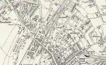 The station opened on 1 May 1907,[4] with the intention that the branch was to be extended across the town to a point just south of Uxbridge Vine Street railway station, the terminus of the GWR branch from West Drayton. Some land was purchased and the lines extended over High Street on a bridge,[5] but the proposal was abandoned in 1914.
