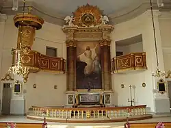 Before the church was built, a wood church was built in 1642. Drawings for a new church were established in 1818 by architect Lorens Axel Fredrik Almfelt (1781-1844). The present church building was built in1824–27 and opened in 1830. The last renovation of the church was in 1987–88, according to a drawing by architect Jerk Alton.[2]