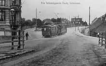 The Gamlebyen Line—until 1925 known as the Oslo Line—was one of the original horsecar lines in Oslo, opened by KSS on 6 October 1875.[2] The Vålerenga area and its vicinity were incorporated into the municipality of Christiania (today Oslo) in 1878 and the areas experience a growth.[5]