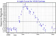 A light curve for V518 Carinae, plotted from Hipparcos data[10]