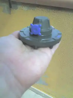 TECNOVAR VAR/40 - Disassembled showing the upper halve of the top part, blue and green caps stand respectively for the fuse in transport position (to be carried in the due space inside the safety cap) and for the fuse in operational position.