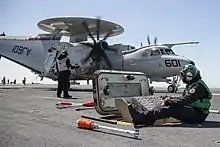 The last Group II variant of the E-2C in the US Navy was retired on 19 November 2019 at a ceremony onboard Navy Station Norfolk.[3] The squadron then flew the E-2C Hawkeye 2000 until 1 June 2021. The squadron transitioned to the E-2D Hawkeye in 2021. At the same time CVW-8 was reassigned to USS Gerald R. Ford.