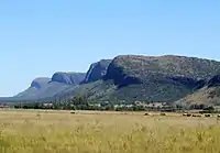 It lies at the southern edge of the rugged Waterberg Massif, which is a biosphere that contains considerable biodiversity, including numerous large mammals (e.g. Giraffe, White Rhino, Blue Wildebeest). Waterberg is the first region in the northern part of South Africa to be named as a Biosphere Reserve by UNESCO. The extensive rock formation was shaped by hundreds of millions of years of riverine erosion to yield diverse bluff and butte landform.[2]