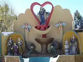 There is a traditional tale telling that many years ago Saint Barbara appeared as a shepherdess on the shore of Qucha Quchita. The people who arrived at this place attracted by the incident found a beautiful image of the saint which they carried to the village of Vacas. Because of this event Vacas was founded officially as Santa Bárbara de Bacas in the middle of the 17th century.[12]