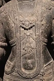 The Vaijayanti (Sanskrit: वैजयन्ति, romanized: Vaijayantī, lit. 'garland of victory')[1] is a mythological garland or elemental necklace, primarily associated with Vishnu.[2] Employed in its worship as a garland, this object is also called the Vaijayantimala, or the Vanamala.[3][4]