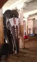The Temple has two prakaram, or closed precincts. Vaithamanithi Perumal, the main deity, is in a reclining pose facing east. A Marakka is used as his pillow. He is looking at the palm of his left hand to watch over the location of the wealth.[1] It is believed that people who pray here are blessed with great wealth.[1] The original structure is believed to have been refurbished by Rani Mangammal (1689–1704 CE).[2] The temple is located in Tiruchendur-Tirunelveli route, Tamil Nadu, India in the banks of Thamiraparani river, in the South Indian state of Tamil Nadu. The temple is constructed in Dravidian style of architecture. All the shrines of the temple are located in a rectangular granite structure. The temple has an imposing image of Vishnu, a lotus stalk from the navel of the image emanates the image of Brahma. The feet of the deity can be viewed through the passage. The temple has two prakarams (closed precincts of a temple). The images of the festival images are located inside the sanctum.[3]