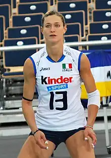 Valentina Arrighetti (born January 26, 1985, Genoa) is an Italian professional volleyball player. She plays for Italy women's national volleyball team as a middle blocker, as well as playing at club level for Volley Bergamo. She has competed in the 2012 Summer Olympics.[1] She is 1.85 m (6 ft 1 in) tall and weights 72 kg.