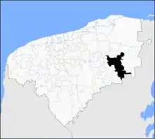Valladolid Municipality (Saki' in Maya) has its seat in Valladolid, Yucatán in the southeastern part of the Mexican state of Yucatán. Valladolid is in the inland eastern part of the state at 20°40′N 88°12′W / 20.67°N 88.20°W.