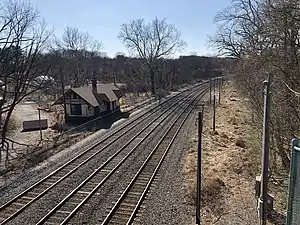 Valley Forge Park station (also known as Port Kennedy station) is a former train station in Valley Forge, Pennsylvania. The station is visible from Sullivan's Bridge in the Valley Forge National Historic Park. Valley Forge Park station was originally built by the Reading Railroad as Port Kennedy station, and later served the SEPTA diesel service extending from the Norristown section of the Manayunk/Norristown Line to Pottsville. Service was originally suspended prior to SEPTA taking over from Reading Railroad but was opened in 1976 for the American bicentennial.[2] In 1981, the station was closed again when SEPTA discontinued the diesel service.