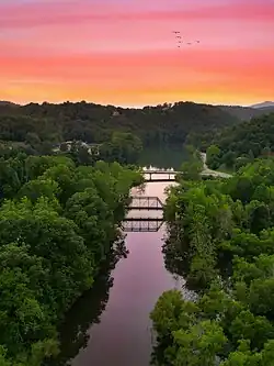 ![]() Old railroad bridge over the Valley River in Murphy, North Carolina, in July 2023 | |