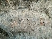 The Jain sculpture are engraved on two spots, one on the norther side of Murugan temple and second on the southern side, with one sculpture with superhuman dimensions.[11] There is an image of Ambika in sukhasana position wearing a necklace, armbands, and crown.[13] Ambika is depicted sitting on a lion with carvings of her two sons below her pedestal.[14] There is also image of Padmavati with 4 hands, holding goad and noose in upper right and left hands.[7]