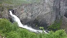 Valursfossen (English: Valur Falls) is a waterfall in the municipality of Eidfjord in the county of Vestland, Norway. It is part of the river Veig, where it runs down from the mountain plateau Hardangervidda and down into the valley Valursdalen.[1] It has a total descent of 272 m.[2]