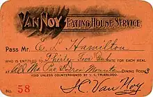 The Van Noy Railway News and Hotel Company, known today as HMSHost, was a business founded by the Van Noy Brothers of Kansas City, Missouri, which developed at the beginning of the twentieth century to provide services to travelers aboard passenger trains. At a time when most passenger trains carried neither dining cars nor lounge cars, private businessmen such as the Van Noys recognized a profit opportunity by operating eating houses at railroad junction points and selling snacks and novelties aboard the trains.
