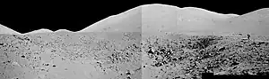 View of Van Serg with Eugene Cernan at right. North Massif is on the horizon.