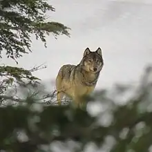 The Vancouver Island wolf is recognized as a subspecies of Canis lupus in the taxonomic authority Mammal Species of the World (2005).[12] Studies using mitochondrial DNA have indicated that the wolves of coastal southeast Alaska are genetically distinct from inland grey wolves, reflecting a pattern also observed in other taxa.[13][14][15] They show a phylogenetic relationship with extirpated wolves from the south (Oklahoma), indicating that these wolves are the last remains of a once widespread group that has been largely extirpated during the last century and that the wolves of northern North America had originally expanded from southern refuges below the Wisconsin glaciation after the ice had melted at the end of the Last Glacial Maximum. These findings call into question the taxonomic classification of C.l. nulibus proposed by Nowak.[14] Another study found that the wolves of coastal British Columbia were genetically and ecologically distinct from the inland wolves, including other wolves from inland British Columbia.[16] A study of the three coastal wolves indicated a close phylogenetic relationship across regions that are geographically and ecologically contiguous, and the study proposed that Canis lupus ligoni (Alexander Archipelago wolf), Canis lupus columbianus (British Columbia wolf), and Canis lupus crassodon (Vancouver Island wolf) should be recognized as a single subspecies of Canis lupus.[15]