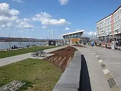 The M.J. Murdock Charitable Trust was announced as the first office tenant for the project in 2015.[2] The $1.3 billion project, consisting of a city park and pier and five residential, office and retail buildings, began construction in 2016.[3][4][5] The park opened September 29, 2018.[6]
