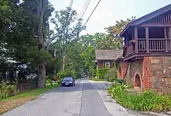 All the lots are developed. The area nevertheless retains a pastoral quality, since the houses and buildings are small-scale frame, stone and brick constructions in the Federal or Shingle architectural styles. There is plenty of room for the large shade trees, lawns and landscaping. Vanderbilt Lane, which begins at Route 9 just opposite one of the lesser gates to the Vanderbilt estate, is also narrow, more like a driveway than a through street.