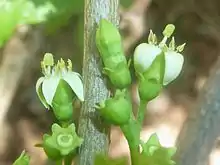 Vangueria cyanescens, the Kalahari wild-medlar, is a species of flowering plant in the family Rubiaceae. It is found in Angola, Botswana, Namibia, and Zambia. The epithet is a Latin adjective meaning dark or deep blue, referring to the colour of the leaves, especially after drying.