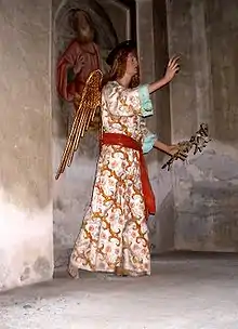 About 150 metres (490 ft) above the town the Sacro Monte di Varallo is one of the most famous Piedmontese pilgrimage sites, and the oldest of the Sacri Monti of Piedmont and Lombardy which were inscribed by UNESCO in the World Heritage List in 2003. The environs are composed of winding paths leading past 45 chapel-like enclosures containing groups of life-size painted terra-cotta figures with backgrounds in fresco (by Gaudenzio Ferrari and others). The tableaux represent scenes mainly from the life of Jesus. The array was initiated by a Franciscan, Bernardino Caimi, who aimed to reproduce locally images of the passion as a goal of pilgrims. The main pilgrimage church was built by Pellegrino Tibaldi after 1578. In the works mentioned Ferrari's whole development may be traced.[3]