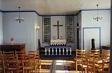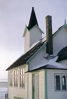 The small white chapel was built in 1908 at the site of the new parish cemetery. It has mostly been used for funerals, but more recently it has been opened up for weddings and baptisms also. Unlike most churches in Finnmark county, this one was not burned down during World War II.[1][2]