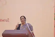 Varsha Mahendra Adalja is an Indian Gujarati language feminist novelist, playwright and negotiator who won the 1995 Sahitya Akademi Award for Gujarati language for her novel Ansar. She is also a dramatist, writing for stage plays, screenplays, and radio.