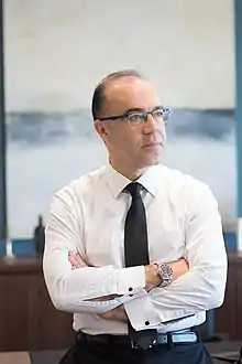 Vasilis Gregoriou (born 1965, Trikala, Greece)[1] is a researcher, inventor, technology entrepreneur and former Director and Chairman of the Board of Directors at National Hellenic Research Foundation (NHRF) in Athens, Greece.[2][3][4] During his career, he has achieved international recognition by serving in research and administrative positions both in Greece and the US.[5][6][7] His studies in Greece began at the University of Patras (BSc. Chemistry) while his studies in the United States took place at Duke University where he received a PhD degree in Physical Chemistry.[2][8] He was also a National Research Service Award recipient at Princeton University.[9]