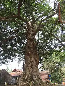 Outside forests, the tree is found as avenue trees along roadsides in some areas. In Karnataka, the species does not occur in Uttara Kannada district, but was introduced by the Sonda Kinds about 500 years ago and planted along the roadsides in Sirsi, Siddapur, and Yellapur towns.[6] It was planted extensively as an avenue tree in Dakshina Kannada and the Malabar and Travancore regions of Kerala.[5]