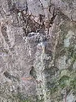 Evergreen trees with cylindrical, straight boles, growing up to 40 m tall, occasionally up to 60 m.[4] In evergreen forests, the trees can grow to large girth, with an individual reaching up to 5.26 m in girth recorded in Kodagu.[5] The bark is smooth, grey with green and white blotches on the trunk[6] and a cream colored blaze.[4] On scarring, it exudes a white, aromatic resin. The tree has dense foliage in a oval or dome-like canopy. The young branchlets are nearly cylindrical and have stellate (star-shaped) hairs.