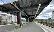 The station has a normal weekday about 1700 boarding passengers, and it is anticipated that once Vega district is fully developed, there will be approximately 4200 boarding passengers each day.[4] About 90 parking spaces for have been created, and bicycle parking is available, opposite the station entrance.