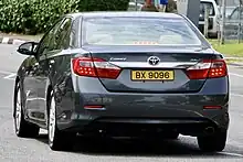 Possible license plate combinations range from B 1 to BZZ 9999 or KA 1 to KP 9999.[3] The first letter is either "B" for cars registered with the Brunei-Muara Land Transport Department prior to 2006, or "K" for cars registered with the Kuala Belait Land Transport Department prior to 2006. After 2006, the letter "K" can be assigned to any car irrespective of the location in which the car are registered. The table below shows special cases & exceptions. Some letters are not used for example: the letters I & O are not used to avoid ambiguity with numbers or other forms of local license plates.