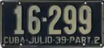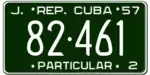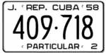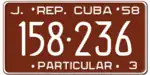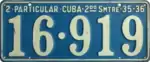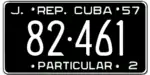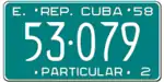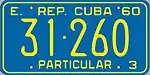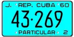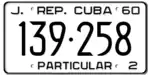 Cuban vehicle registration plates contained three letters and three numbers. The colour of plates is also an important identification element. Ordinary (non-special) licence plates have also a number on the lower central part of the plate ranging from 0 to 9, denoting the type of the vehicle. As of 2016, some of these plates are still in use, but are being phased out. Particular refers to privately owned vehicles. The letter denotes the expiry month: E = Enero (January), J = Julio (July).[3]
