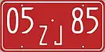 Cars for hire have a dark red licence plate beginning with "T" letter (meaning turista), followed by five digits in white color. The border of the plate is also in white.[5]