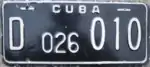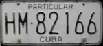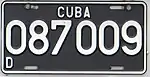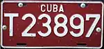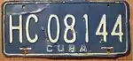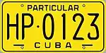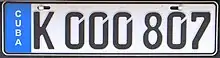 The current vehicle registration plate system of Cuba was introduced in May 2013. Current plates are European standard 520 mm × 110 mm, completely replacing the previous system introduced in 2002.[1] The international vehicle registration code for Cuba is C.