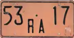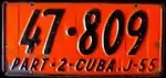 white on orange private vehicle-note Cuban plates are often repaired and repainted by their owners as they become weathered