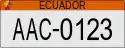 The plates have a XX-0123 format with ECUADOR in black capital letters on top of the plates. The first two letters denote different types of plates based on the user of the vehicle.