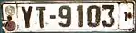 For just 2 years the system was L–NN, L–NNN, L–NNNN or L–NNNNN with black characters on yellow background where L was the initial of the city they were licensed in (e.g. "A" for Athens, "Θ" for Thessaloniki etc.). All these plates display "1953–54" (the initial time period for the change, later revised) in black characters on a white background using a smaller typeface in the top left corner. These plates were compulsorily withdrawn in 1956.