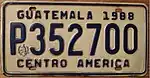 Guatemala requires its residents to register their motor vehicles and display vehicle registration plates.[1] Current plates are North American standard 6 × 12 inches (152 × 300 mm).[2][3]