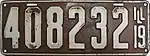 1919 | White on brown with border line; "ILL 19" at right | none | 123456 | 1 to approximately 473000 | |