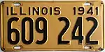 1941 | Black on golden yellow; "ILL 1941" or "ILLINOIS 1941" at top | none | 1234 567 | 1 to approximately 1827 000 | |