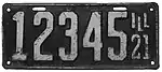 1921 | White on black with border line; "ILL 21" at right | none | 123456 | 1 to approximately 579000 | |